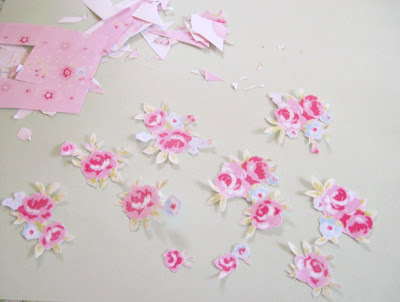 As you may know, many of my projects begin with creating what I call "pretty paper" which is a color copy of a favorite floral fabric (say that 3x fast). You may of course use any paper with a motif you like – stationery, wrapping paper, scrapbooking paper.