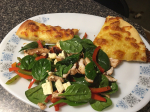 It’s called Chicken Fajita Salad because it’s like a deconstructed fajita. Tasty, spicy chicken, pepper strips and salad, all tossed together, with a dusting of crumbled feta cheese. Yummmmm!
