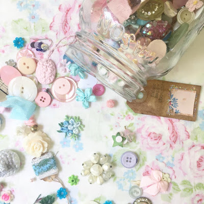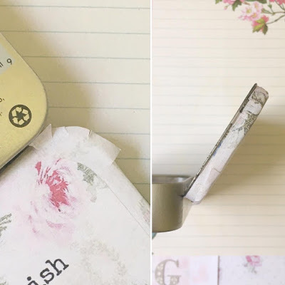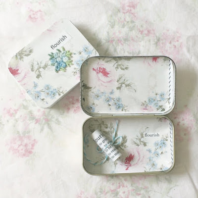 Top the decorated tin with a little embellishment if you wish. Over years of tinkering, I've amassed all kinds of bits and bobs, many from the wonderful swaps in which I participated during my early days of blogging. Start your own "whimsy jar" with random buttons and beads, ribbon, broken jewelry, and more.