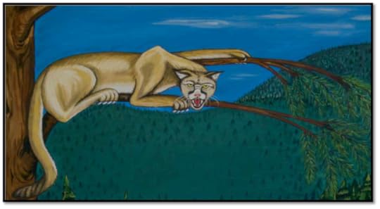 Cougar! I went into the tiny generator room, its door facing the bush. I felt like a canary in a cage. Captured!... The next morning Alex came by to check his traps. “What should I do?” “Nothing,” Alex repeated. “If he wants you, he gets you, and there is nothing you can do about it.” He went on to explain, “It is no good to carry a gun. You’ll never see a cougar. He will be in a tree hidden. You will not see him until it is too late.”