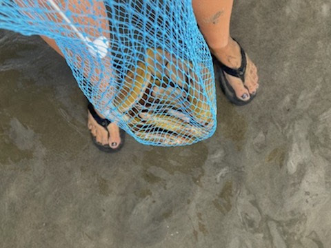 A limit of clams in 20 minutes. We dig them in the dark sand on low tides. Another great workout followed by an hour of cleaning clams. Delicious!