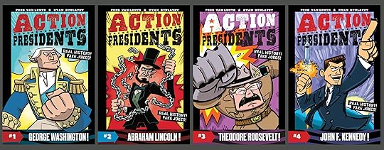 Real history! Fake jokes! FULL COLOR! The four irreverent-but-accurate volumes of Ryan Dunlavey's and my ACTION PRESIDENTS are out today! Preview the OGNs—George Washington, Abraham Lincoln, Theodore Roosevelt, and John F. Kennedy—at