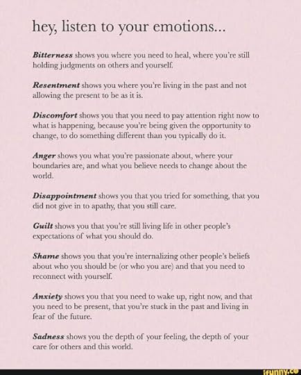 The point is, we put ideas out of our heads when they are uncomfortable. It’s protective. Who wants to think about unfinished business all the time? And yet our emotions are always providing us feedback in one way or another. Here are some examples.
