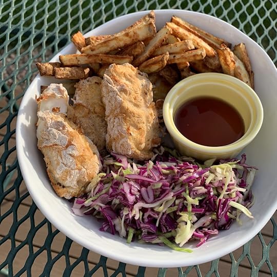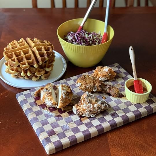 Day 2 (Will’s Birthday!). Chicken and waffles with coleslaw and hot honey