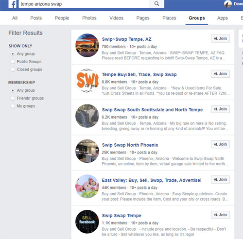 Just a few of the many local yard sale and swap groups for Tempe Arizona