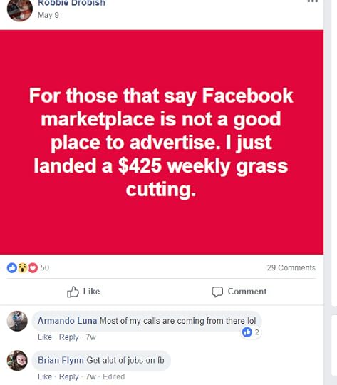 Your post title should include the cities you serve. The majority of the listing titles are really generic. “Lawn care service” or “Landscaping services” are common. Instead, “Lawn care services for Miami” attract more readers as they scan through the dozens and dozens of listingsInclude top quality images in your post along with a couple of yourself or team. It looks more personableInclude a testimonial or twoBullet list the services you offer. Remember, people don’t read so much as they scan.2) Get Landscaping Customers With Local Facebook Groups and MarketplaceA) Post To Groups and MarketplaceDo a search for your city or subdivision, and you���ll likely find Facebook groups that allow people to post and advertise their services. Admittedly, most of these listings are spam, but I know of plenty of landscaping companies who have gotten consistent leads from them. Landscaping companies tend to see higher response rates than other businesses simply because lawn care is a service that homeowners consider to be a necessity.
