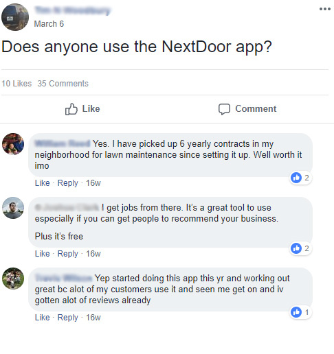 3) Join Nextdoor To Find More Lawn Care CustomersNextdoor is niche social networking site for people and their neighborhoods. Its Craigslist meets Facebook with a hyper-local flavor. There is a section for events, classifieds, and general discussions. Discussions regarding lost and found pets, HOA fees, and local traffic are some of the more popular topics. But what I���ve seen from using the platform is the consistent inquiries for home services such as landscaping and lawn care. Here are several crucial steps you need to take to pick up clients from this site;