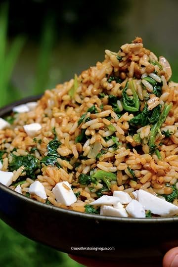 The post Rice & Lentils with Spinach (Pilafi me Fakes) appeared first on Mouthwatering Vegan.