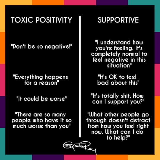 Next time you’re supporting a friend, colleague or loved one, make sure you validate how they are feeling and offer support rather than using a form of toxic positivity to paper over their feelings and not allow them to be heard and honoured.
