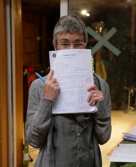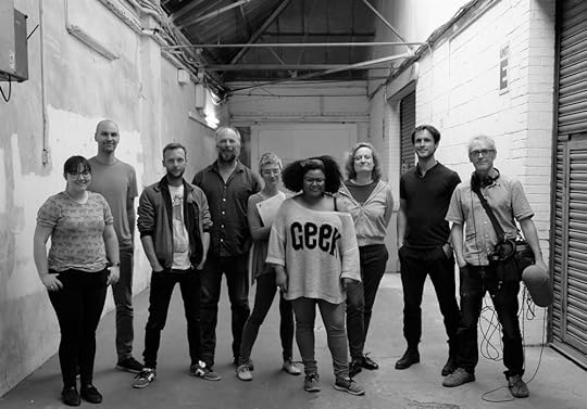 Brave explorers L to R: Maddie Searle (PA) Joby Waldman (director) Carl Prekopp (Mike), Nigel Barratt (Jarek), me, Gbemisola Ikumelo (Nell), Hannah Ringham (Sarah), Rob Heaps (Gabe) and Alisdair McGregor (sound).