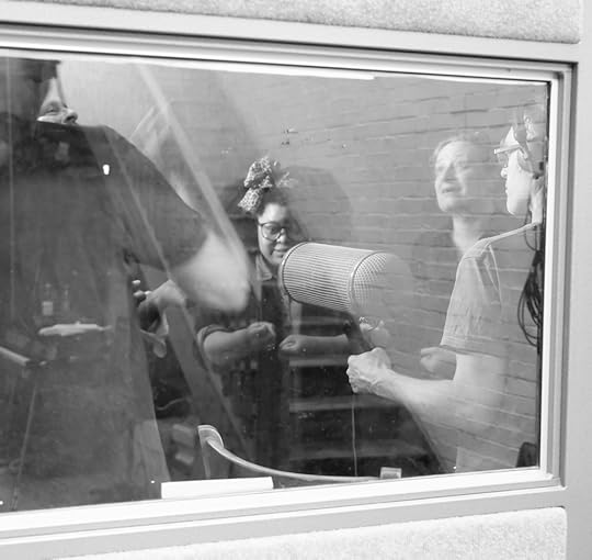 At the heart of every story is a still, quiet moment of profound change. For that moment we retreated to the low-roofed booth, and recorded with a static mic. We also used it for the really loud stuff, where characters could yell, scream or sing without the sound bouncing off the walls. Gbemisola Ikumelo (below) has the most extraordinary voice, as an actor and a singer. 'Do it like a cat on heat'. 'Make it more music-theatre'. No problem.