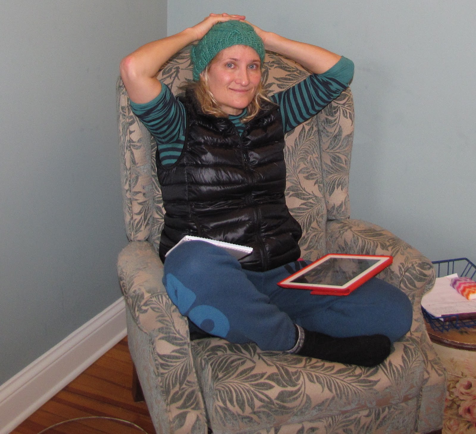 Jill Sobule, in my office, with her iPad, and her thinking cap on. We were figuring out our show order for the Jill & Julia Show which we did at Space, in Evanston, IL on January 26th. We filmed the show and we're making a Jill & Julia website (should by up by the end of March.) We have several shows booked for July, and even one coming up, March 16th in Hartford, CT at the Mark Twain House. The Mark Twain house! That's awesome. I'm really looking forward to it. (Jill is an amazing rock/folk singer and musician, see her website jillsobule.com)