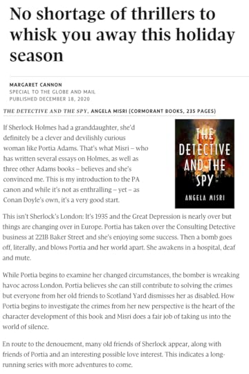 Awesome news to report – Margaret Cannon reviewed The Detective and the Spy in the Globe and Mail this week! CHECK IT OUT: https://www.theglobeandmail.com/arts/books/article-no-shortage-of-thrillers-to-whisk-you-away-this-holiday-season/
