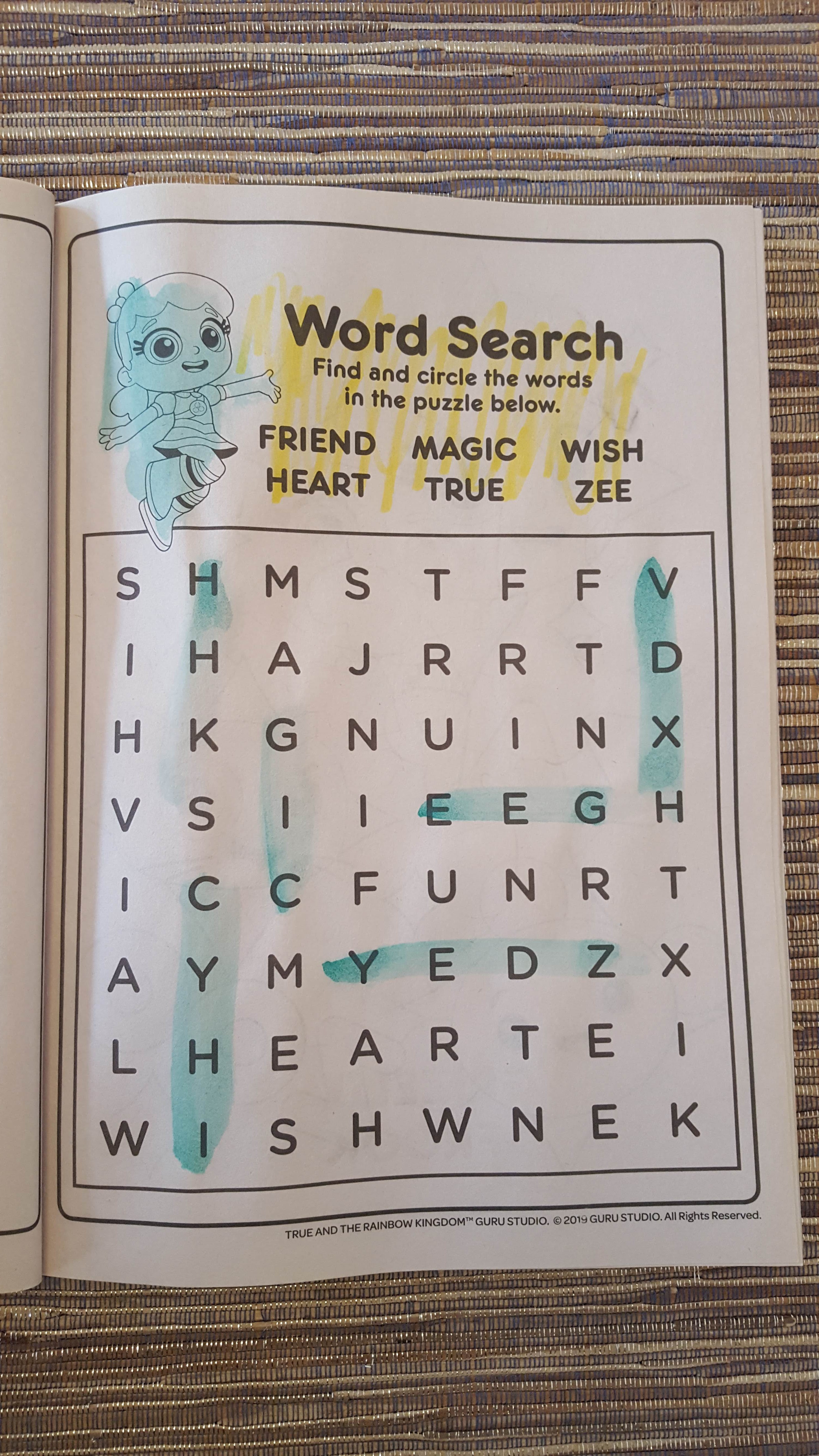 20. Break for a word search but still have to make it good. Some lines, a shmear over True, some yellow grounding, fft.