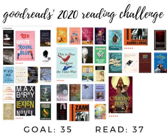 reading goal: 35 books // actually read: 37 books! I met and beat my goal for the first time in a few years!