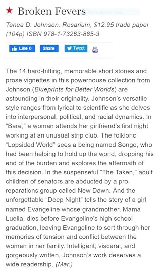 Broken Fevers is out March 2nd, 2021, but available for preorder now from Tombolo Books and Amazon.