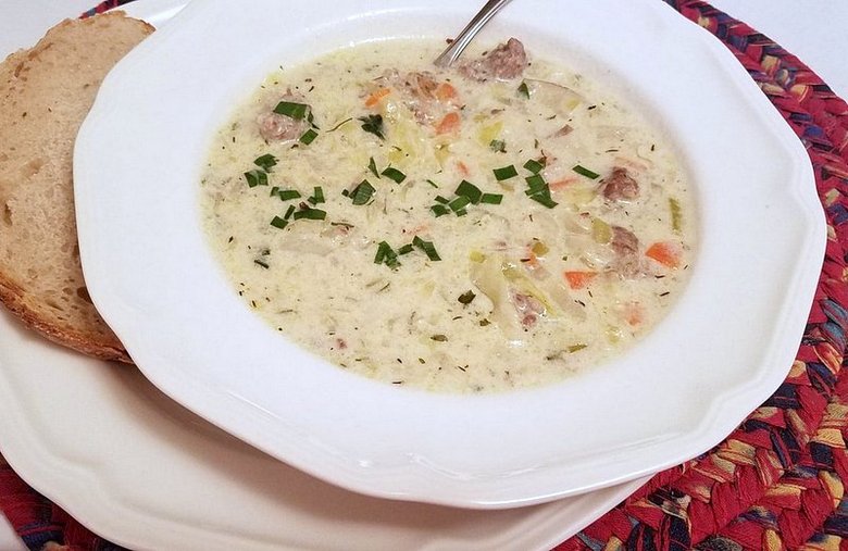 Creamy Cabbage and Bratwurst Soup