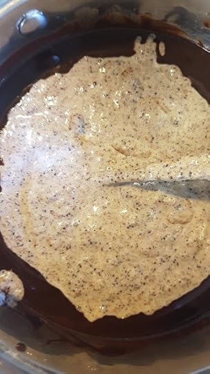 Історія цього пляцка для мене почалася в Квасах, а саме в Ципі “Гагарін і Бокораш”, де ми зустрілися з друзями. Там до біса смачно і душевно, я би хотіла, щоб мої поминки справляли там (оскільки весілля то навряд). Принесли нам до стауту шматочок чогось коричневого. Увімкнувший власний HPLC (high performance liquid chromatography, жарт для задротів), збагнула я, що там мак і шоколад, та шоколадний ганаш. В Києві загуглила рецепт, і чесно його наводжу.