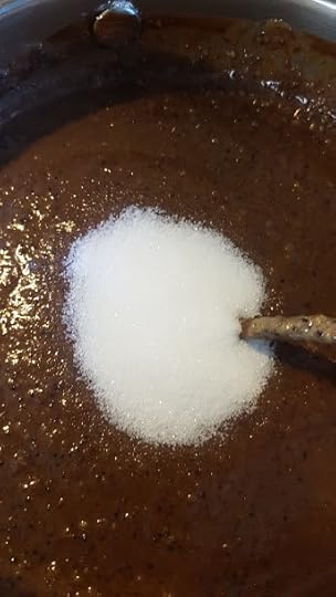 біле то ванільний цукор. перемішатиТим часом сливи мають стати м’якими. І мене було багато соку, і я дала йому трохи випаруватися. Налила тісто на вже тепле, не гаряче.