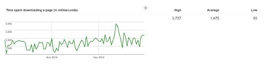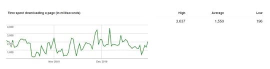As a local small business selling a high-end home service, it doesn’t get high traffic. On average, it’s anywhere between 20-40 visitors a day. The chart shows you the time in milliseconds, and his average time to download a page is ~990 milliseconds. The high here is 1.5 seconds.