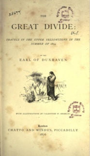 I’ll begin with the Earl of Dunraven’s book, The Great Divide, which chronicles his trip to Yellowstone Park in 1874. The Earl was a wealthy Irish lord who loved adventure, hunting and fishing. He had been a newspaper correspondent and was a skilled writer. He could describe his adventures in bone-chilling detail or with wit and humor. His book is the source of many posts on this blog that you can see by selecting the “Dunraven” button at the left of this page.