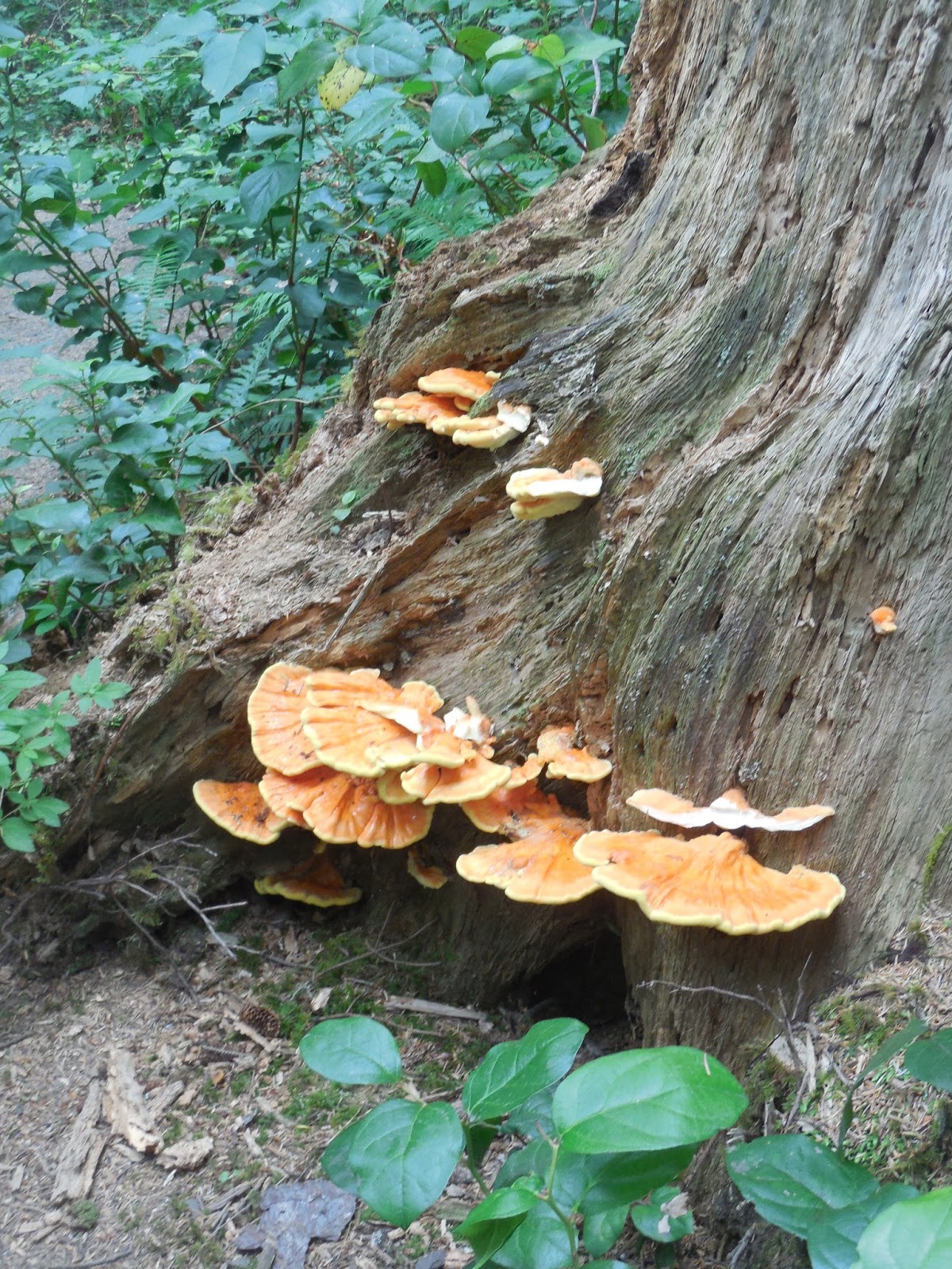 Chicken of the Woods (?) FungiWhen Brett moved to area 10 years I knew his enchantment with the area meant he'd never leave. I'm beginning to understand it. I love my coast better than his trees and mountain, but it's all available and I bought some trekking poles to hike when the wind on the beach is so strong it blows sand in your teeth. Winds of 80-120 mph are not unusual. The forest offers other treasures, one being edible mushrooms, but I've not explored that aspect except in pictures. If this orange fungus is what I think it is - it's edible when it's "young and fresh..." But I think I'll pass.Amid all the flurry or tourism and visits from friends, much of Oregon burned over the summer and tourists here were unhappy about the burn-ban. Really? In other news, Marijuana has been legalized and small Cannabis Boutiques have sprung up all over. I haven't sampled them yet. Toward the end of the summer, we were blessed with an invasion of Humpbacks - cavorting, breaching, diving and generally enjoying a feeding frenzy very close to shore. They were accompanied by porpoises (rare here), sea lions and the occasional Orca! Unfortunately, they were driven closer to shore because of a bizarre low-nutrient warm water mass given the scientific name of "The Blob" and that's a scary thing from an ecological perspective.