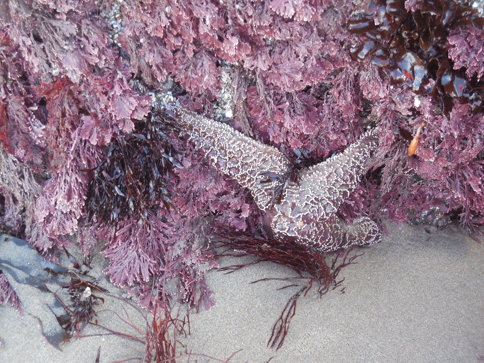 Lacy pink Corraline algae with an Ochre Sea StarBut it's not summer anymore and the beach at least has reclaimed its sense of pristine windswept remoteness.