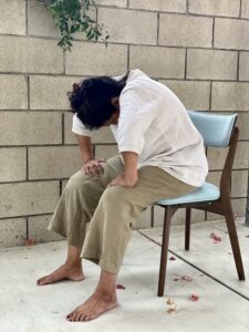 1. Sit comfortably on the floor or a chair.