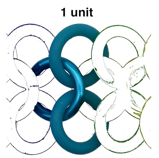 For a medium size bracelet, you’ll need 30 units. One option is to use 5 colors, and repeat each color 6 times. (See color tip below the image)