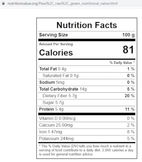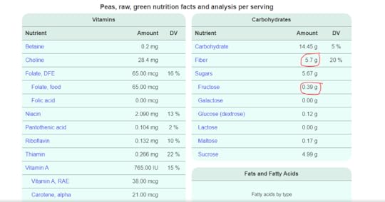 Чи погляньмо на зелений горошок. Він теж нині на початку літа дорогий. Але ж можна купувати мороженим у фасуванні для КаБаРе (подякуйте за пораду). В горошку більше білка, більше вуглеводів (о ужасть!), а склад вітамінів співставний чи навіть щедріший, ніж в спаржі.
