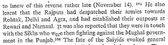 For the Rohillas(Najib) and Shias(Shuja) it wasn’t the time to save Islam, but to save their own political independence and Kingdoms. To this real reason the author eventually tumbles: