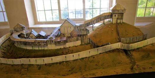 The last trip we took was north to find the site of the eleventh century motte and bailey castle near the border town of Montgomery. We tried for a while to find the site of the old Norman castle, Hen Domen but gave up and went into the lovely market town of Montgomery for a pub lunch. Everything was falling in to place, if we could just find the old site. Walking around the center of town we discovered a small museum.