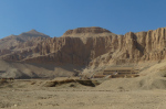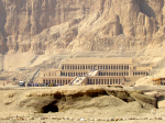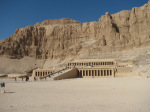 One of the key scenes in the book takes place at the Mortuary Temple of Hatshepsut on the West Bank, and in the craggy hills above it.  This fabulous ancient temple is set against a curtain of cliffs that rise above it.  It is a wonderful example of a temple built in harmony with its natural environment.  Dating from the early part of the 18th Dynasty of the New Kingdom, it is some 3,400 years old.  It has been extensively restored over the last century from the rather more tumbledown structure that Howard Carter would have known.  The Hathor Shrine plays an important part in the story.