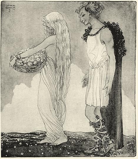 Loki and Idun (1911) by John BauerOnce outside the walls of Asgard, the jotun Thjazi appeared in his eagle form, snatched Idun and her box of apples, and carried her off to jotunheim.