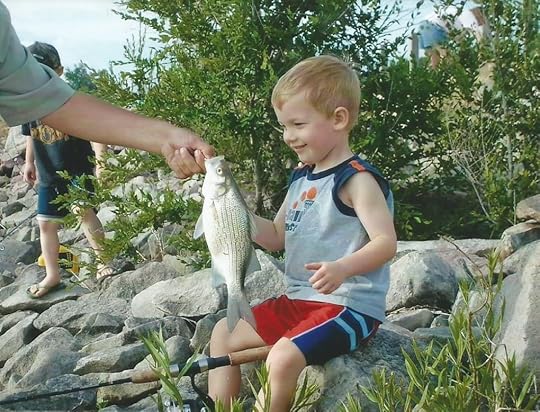 My sister-in-law was quick with the camera and captured the reality. Levi appeared to (possibly) be holding the fish. Maybe he truly thought he was, but the photo tells the truth.