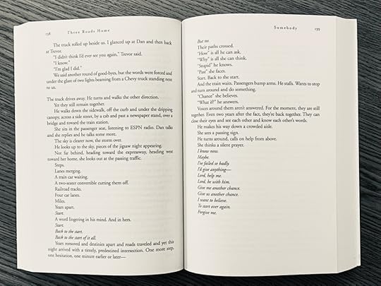 I don’t remember all the details about working on the revisions for Three Roads Home, but I know I added a short section to “Somebody” that became pivotal in my journey as a writer. Reading it now, it feels amateurish and doesn’t truly achieve what I was trying to do. But it was a first for me as an artist. This was maybe one of the first moments when I simply poured out my heart and soul onto the page of a story. I did this with the help of a song I played over and over.