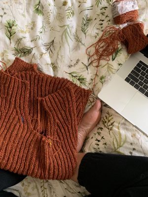 Lately, I have taken to working occasionally from the what’s become my “upstairs office” which is – well. It’s my bed. In the first autumn of the pandemic something in me snapped and for the life of me I suddenly couldn’t figure out why Joe and I were sleeping on a tiny crappy mattress that was more than twenty years old. The thing was second hand when it was new to us, and it was way, way past its best before date. It was too small too – when Elliot was with us it just meant he kicked us all night, and I guess I’d really come to hate that bed a lot, but somehow back when we travelled a lot I got breaks from it and didn’t mind it so much. Cue the lockdown(s) and suddenly it became the focus of everything that was wrong in the world. Everything. Covid? No, I can handle that. Living in the city with the longest lockdown in the world? No, I am not upset about that in the least. Being separated from my loved ones, friends and career and yarn stores? No, none of that is a problem, it was just the STUPID BED.