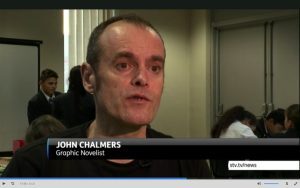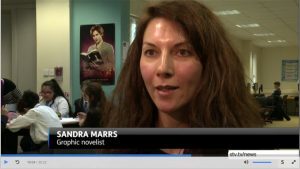 STV News at 6 featured us last night, about our Graphic Novel Authors in Residence project with Glasgow Life at Holyrood Secondary. Ian Lebeter of Glasgow Life also talked about the project. We’re working with pupils from Romania and Slovakia helping them tell stories in comic form. They’re sweet kids, and, now 6 weeks into the project, they are really fired up now and super productive.