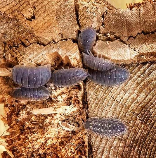 Common wood lice rudely exposed to daylight. They will bolt into darkness as fast as they can,