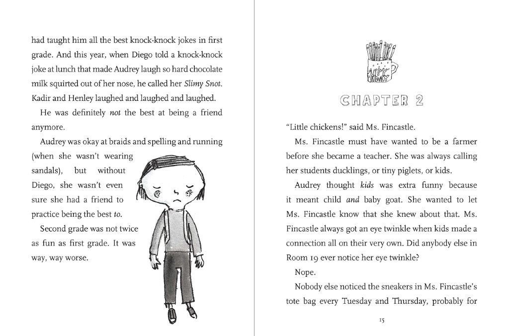 It’s the beginning of the school year, and Audrey is super-duper-duper sure that second grade will be twice as fun as first. Plus they get to put on a play – with costumes and everything! But second grade isn’t turning out to be so great after all. Sure, there are all kinds of new things to learn and do, but the teacher stuck Mimi’s artwork at the top of the filing cabinet, and Audrey’s is stuck somewhere in the middle. And Diego, who was Audrey’s first friend in first grade won’t even tell her any jokes.