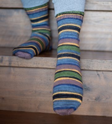 The third pair was another vintage skein, and I always feel bad when I pull these out and use them because I know that it’s sort of unfair to show you pretty things and then have them turn out to be like unobtainium,  but it turns out that this is pretty frequently available.  The pattern is nothing fancy, just my plain regular sock pattern, but the yarn is from Must Stash, and is part of their Galactic battle series. This one’s Stardust, inspired by Rogue One’s Jyn Erso. (Right now they have their holiday collection up- but this this colourway will be back.)