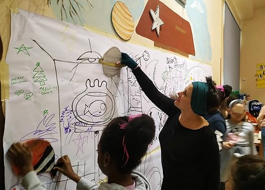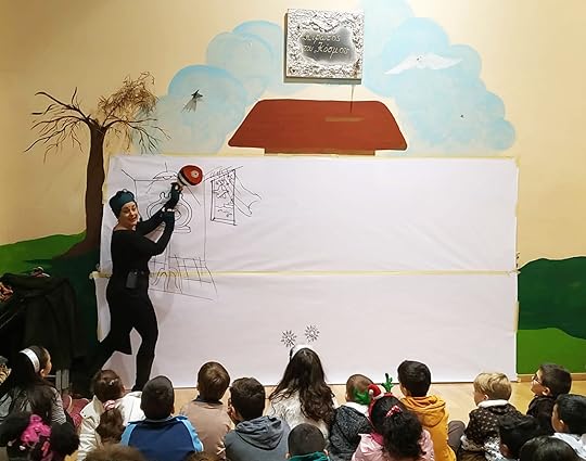 Εκείνο το πρωί, μέσα στην βροχή με την Άννα Βασιλειάδου, την πρόεδρό μας της Γυναικείας Λογοτεχνικής Συντροφιάς, πήγαμε στην Κιβωτό του κόσμου όπου Ζωγραφηγήθηκα στα παιδιά την Χριστουγεννιάτικη ιστορία του Αστεριού.