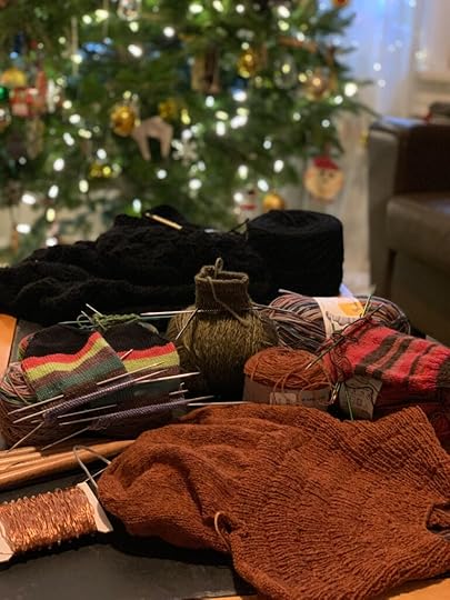 I admit the progress is a little easier to see if you’re either here or supernaturally interested – but I am both so it’s clear to me. First, the shawl is bigger, and I had to start the second ball of yarn which is pretty exciting. There are just 36 rows to go, although they are ever increasing, but let’s leave that bit out because it competes with the optimism. The hat’s gone, that’s because it’s done. The advent socks have six stripes on each and it’s the 6th of December, so can’t hope for better. Last time there were four skeins of sock yarn that were just skeins and now I’ve got a cast on, a cuff and one sock knit to the heel, that’s much better, loads of positivity there. Elliot’s sweater is several centimetres longer – almost at the hem, and then I’ll be on sleeve island for a while but honestly, he’s four. His arms are shrimpy. The Starry Light (rav link) is gone and there’s a new string of lights there – but it’s even better than that, one whole other star was knit in the interval. (That’s three I’ve knit. I told you I don’t know how this ends, I find them really, really compelling.)