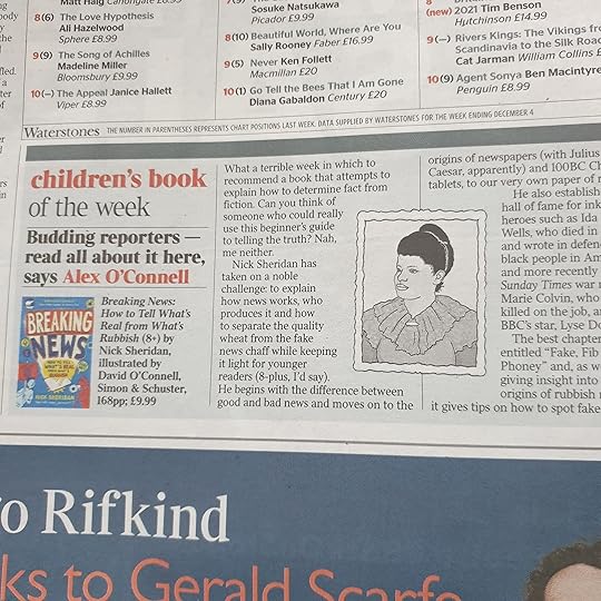 Aimed at 8-12 years olds, it covers the history of journalism and newspapers, describes how news stories are gathered by news organisations, and helps young people to find the real stories amongst all the fake news that is as much a plague of the times as COVID. It’s also very funny! The Times listed it as its children’s book of the week just yesterday (11/12) which was brilliant to see!