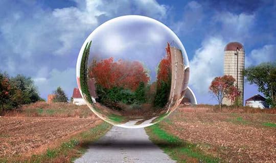 I learned how to fake looking at a scene through a glass ball. If it were a genuine crystal ball, the scene inside would be upside down through some mysterious magic of real glass. Someone in optics might know how that works.