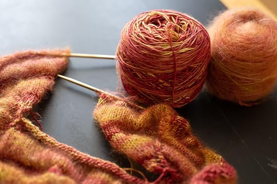 Lichen and Lace 1ply merino and marsh mohair in “Rhubarb” I found some other yarn in the stash and it was so pretty and so spring-like and so I cast that on for a Rock It Tee– and started knitting the heck out of it until I sort of started to wonder about a mohair summer knit and if that and menopause are really a thing? Anyway, I decided the answer to that question was rather inexplicably more, not less, so I ordered more of that yarn and I’ll give it 3/4 length sleeves but that didn’t seem pressing anymore, I mean… I don’t even have all the yarn so…
