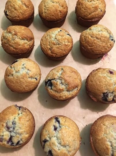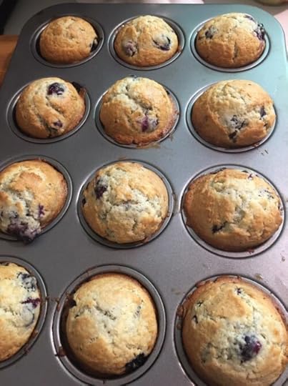 Bake 15-20 minutes. I stick a salad fork into the top of my muffins to test for doneness. Note that electric ovens tend to need the lesser time; gas ovens tend to need a bit more time. Timing can also be affected by whether the blueberries were fresh or frozen.