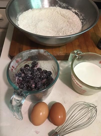 I have no idea why I thought really good blueberry muffins might be somewhat elusive. They’re not. And, amazingly, this recipe slightly adapted from Joy of Cooking, are incredibly fast and easy! You don’t even need a mixer! Here are the ingredients and what you do.