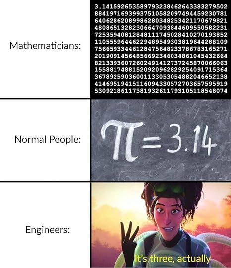 But this year… Well, I’ve done nothing except only remember about the first 50 digits or so. I baked no pies (we’re watching our calories). And my 3D printer is offline (I really gotta fix that thing). So I’m going to do two things today. First, I’m gonna tell you why we care about Pi. Second, I’m going to dump my favorite Pi memes on you. And then for dinner, hubby has promised me some pizza pie…