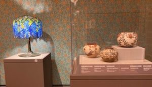 Crystal Bridges exhibit connecting Tiffany lamp and Native American pottery.